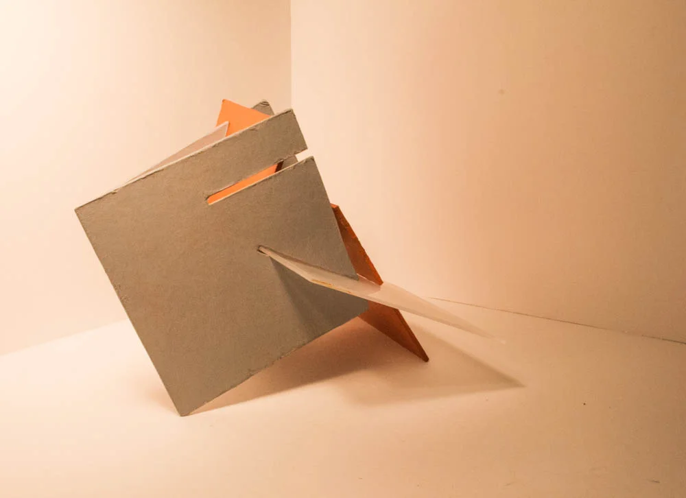 STEP 4. Shallow relief of design. Using corrugated cardboard for a study models, one being a quick relief to feel more freedom within my work, the second being the shallow relief study I wish to follow more closely, we were to transform our 2-D design and draft into a 3-D shallow relief with a focus on additive and subtractive space while maintaining major and minor space. Using 1-ply chipboard for my final model, this ties more closely to the overall design I am creating. Acting within limits yet pushing additive and subtractive space within my "canvas" (11"x11" chipboard base).